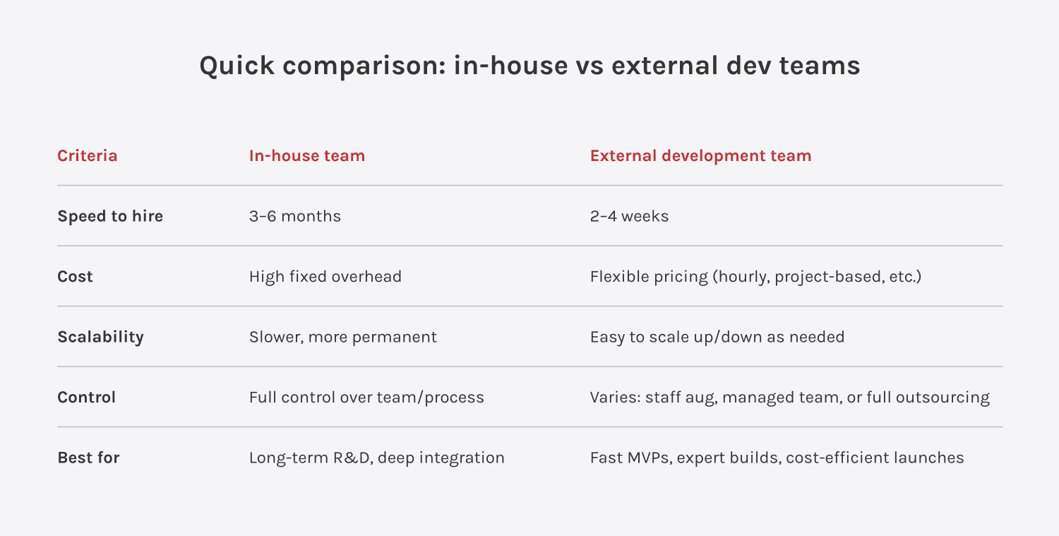 So, if you’re asking how to create a crypto wallet app without burning months on recruitment and setup, external dev teams are often the shortcut.