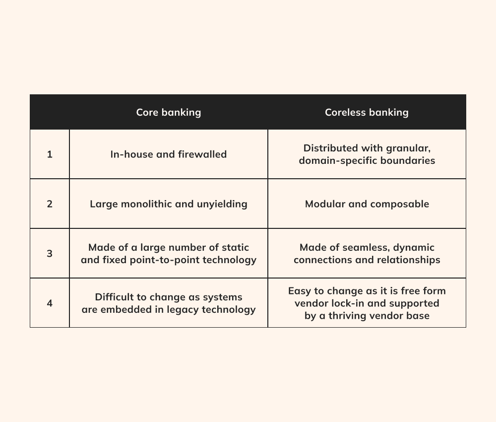 Omform bankens programvarerammeverk med kjerneløse bankløsninger.