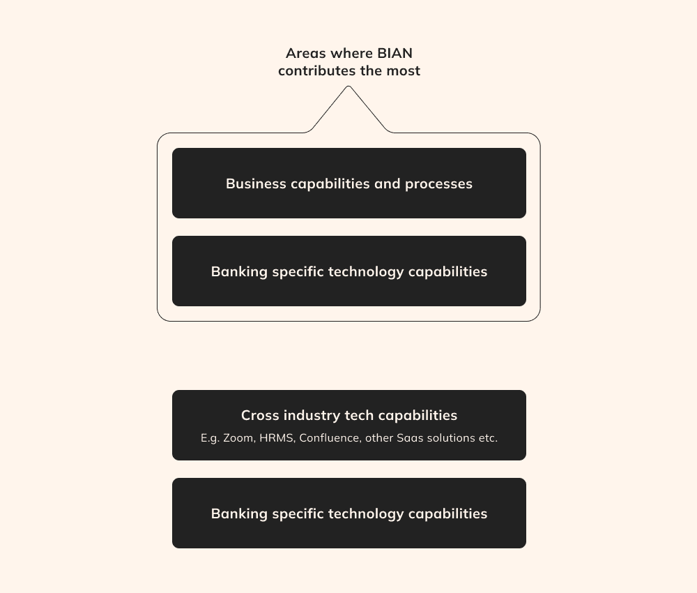 Fra et teknologisk perspektiv er BIAN uvurderlig ved å skape digitale standarder og beste praksis for tjenesteorientert arkitektur (SOA) og API-er, utstyre bankene med detaljerte verktøy og retningslinjer og sikre sømløs interoperabilitet i bankenes økosystemer.