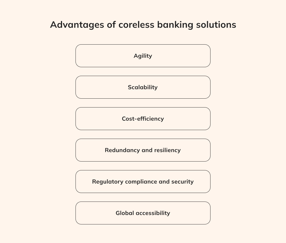 Skalerbarhet er en av styrkene til coreless banking, som også er forankret i den modulære arkitekturen. Mikrotjenester fungerer som byggeklosser som kan skaleres uavhengig av hverandre for å møte varierende transaksjonsbehov og brukerkrav. Bankene kan for eksempel umiddelbart allokere ekstra ressurser til mikrotjenesten for betalingsbehandling, slik at de kan håndtere en økning i antall transaksjoner, for eksempel på Black Friday, uten avbrudd eller redusert ytelse.