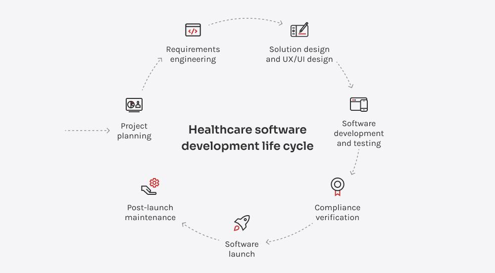 Ryggraden i ethvert vellykket prosjekt for utvikling av programvare i helsevesenet erLivssyklus for programvareutvikling (SDLC)sørger for at prosjektet går som smurt og når forretningsmålene og KPI-ene.