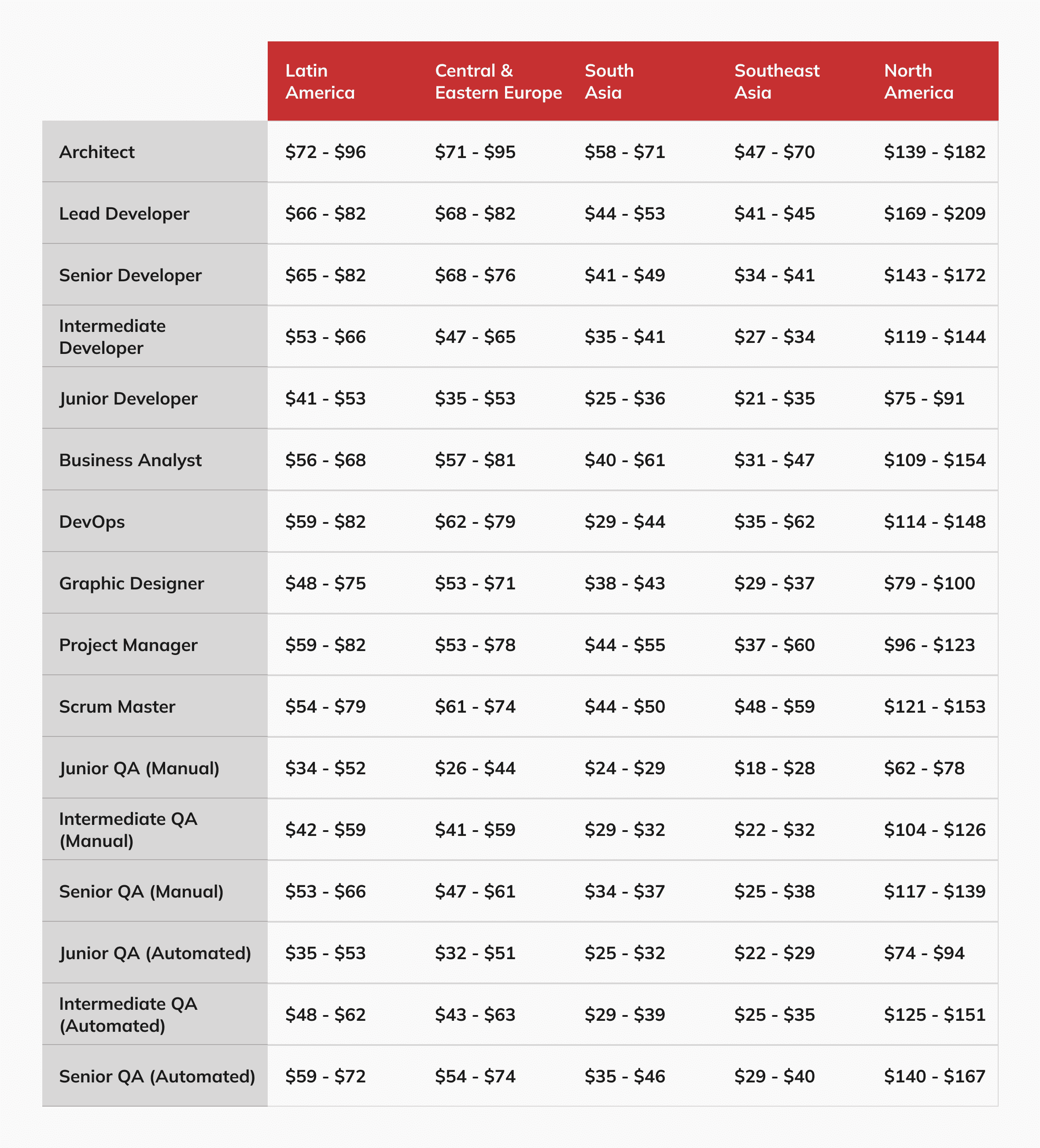 Evaluating team composition is crucial from this standpoint, aiming to blend senior developers’ diversified experience and expertise with the enthusiasm and adaptability of junior ones. A well-balanced team structure comprising both junior and senior specialists results in a blended rate for customers, reducing development costs while maintaining a high-quality, productive team. Achieving the right balance ensures the creation of an all-star team at an optimal price. For instance, building a sophisticated payment provider or tackling the world’s most intricate data challenges may require recruiting from the top 1% talent pipeline. Meanwhile, the majority of companies simply need excellent executors who can analyze technical requirements, write basic code, and fix bugs.