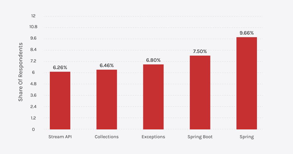 Å velge de riktige verktøyene er viktig når det gjelder utvikling av Java-applikasjoner for bedrifter. I 2024 var Spring-rammeverket det beste valget fornesten 10% av utviklerne, etterfulgt av Spring Boot og Exceptions. Men det betyr ikke at de automatisk passer best for deg. La oss ta en rask titt på noen av de beste alternativene for å gi deg en følelse av hva som finnes der ute.