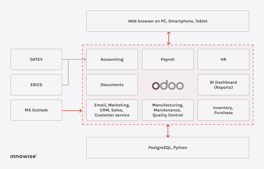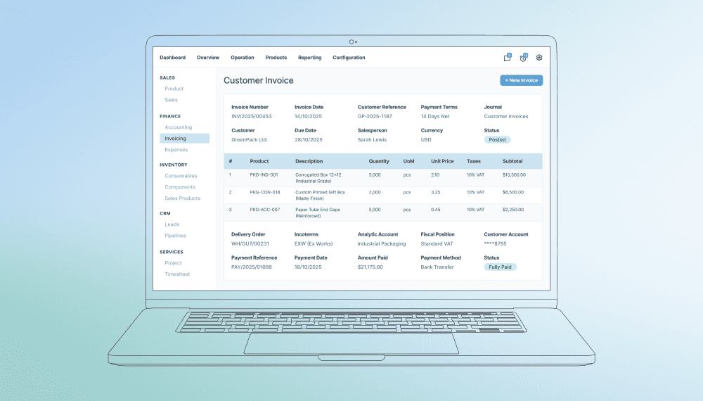 Odoo manufacturing jevner ut produksjonen ved åintegrering av e-handel, salg, lager og verksted i en enhetlig arbeidsflyt. Salgsordrer utløser automatisk produksjon, materialer og tidsplaner. BoM på flere nivåer, kontroll på verkstedet og IoT-sporing gir sanntidssynlighet, reduserer manuelt arbeid, reduserer flaskehalser og forbedrer sporbarheten.