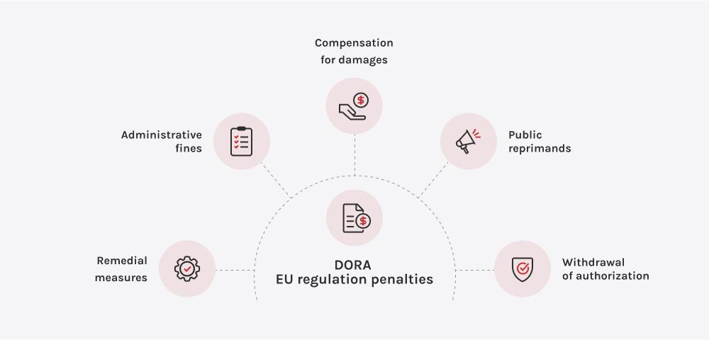 Å ikke oppfylle DORA-standardene er en risiko for virksomheten, omdømmet og den langsiktige strategien. I henhold til DORA skalEuropeiske tilsynsmyndigheter (EBA, ESMA og EIOPA)har nå myndighet til å utstede økonomiske sanksjoner, offentlige irettesettelser og bindende utbedringstiltak. I tilfeller der en tredjepartsleverandør av IKT anses å utgjøre en trussel mot driftsstabiliteten, gir DORA tilsynsmyndighetene mulighet til å tvinge frem en oppsigelse av kontrakter, også med leverandører som leverer kjerneinfrastruktur eller viktige digitale tjenester.