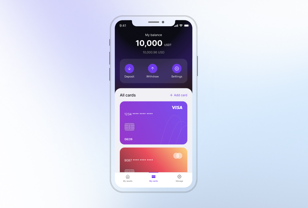 Innowise implementerte backend-logikken for utstedelse av virtuelle betalingskort, fullt ut knyttet til brukernes saldoer som ikke er deponerte. Vi integrerte prosessorer i systemet og konfigurerte dem for støtte for Apple Pay og Google Pay. Utstedelse av fysiske kort ble også forberedt og knyttet til de bredere lojalitets- og KYC-flytene.