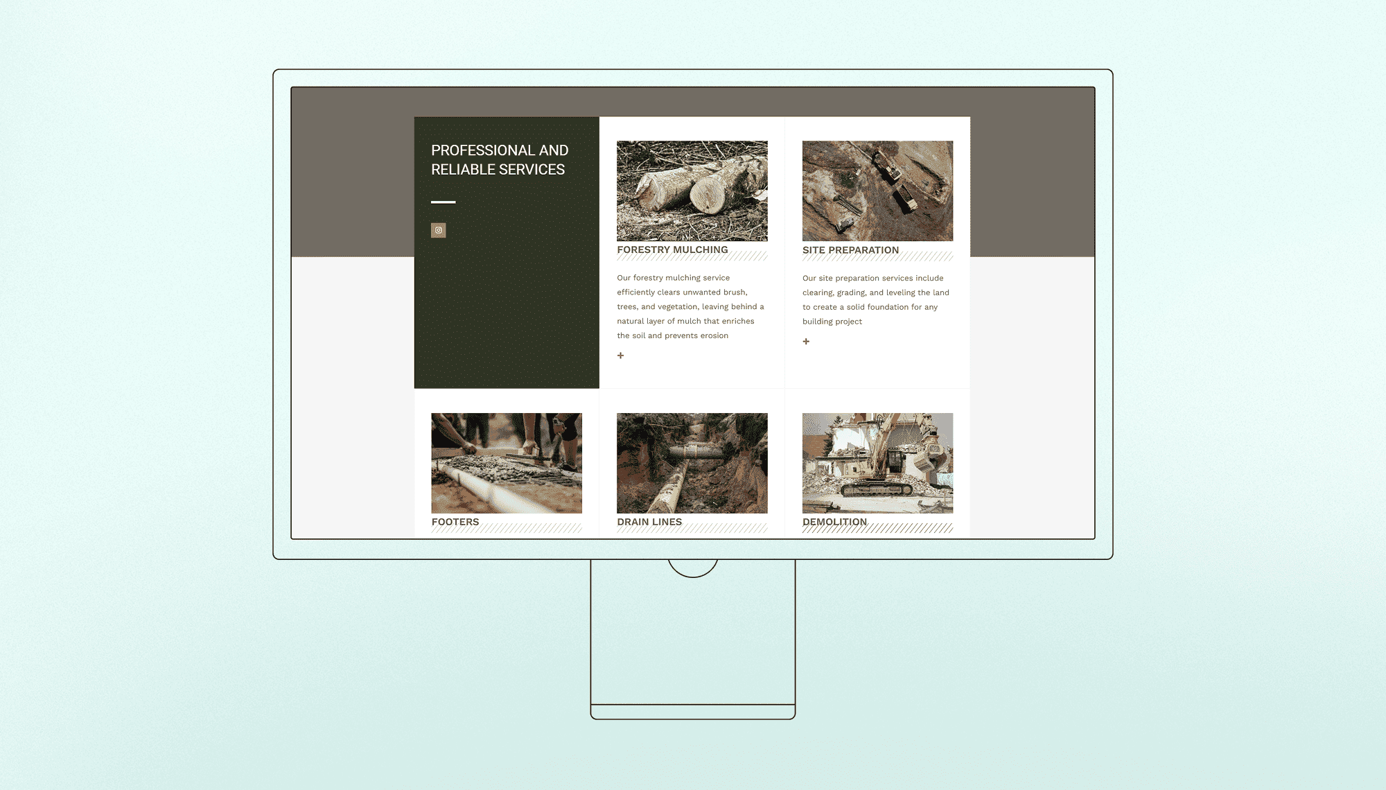 Forrest utgravinghar et profesjonelt, troverdig utseende med fokus på tjenester og ekspertise, slik at kunden kan: