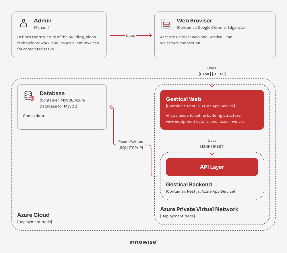 Over tid hadde Gesticals applikasjonsøkosystem – Gestical Web, Gestical Plan og Gestical MIF – vokst betydelig når det gjaldt funksjoner og systembelastning. Arkitektur, infrastruktur og ytelsesoptimalisering hadde imidlertid ikke utviklet seg tilsvarende. Innowise ble engasjert for å modernisere kjerneapplikasjonen, Gestical Web.