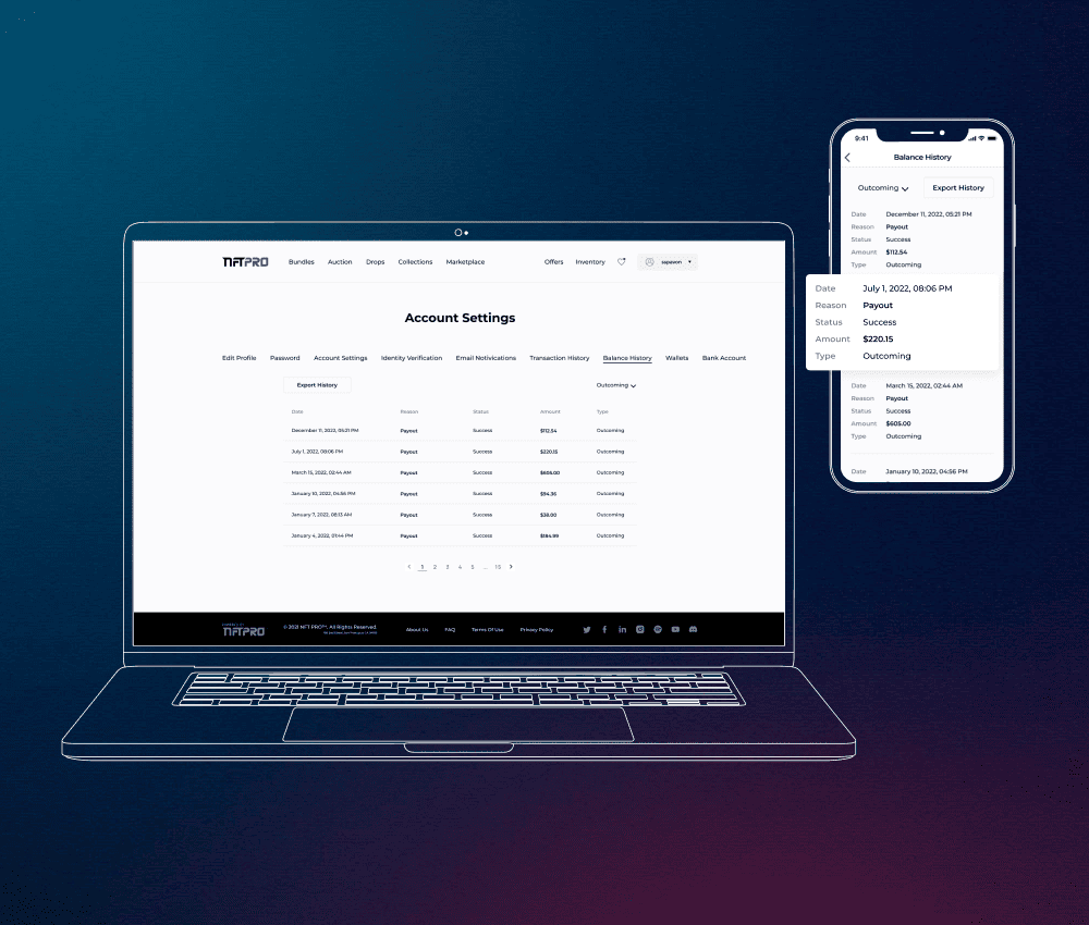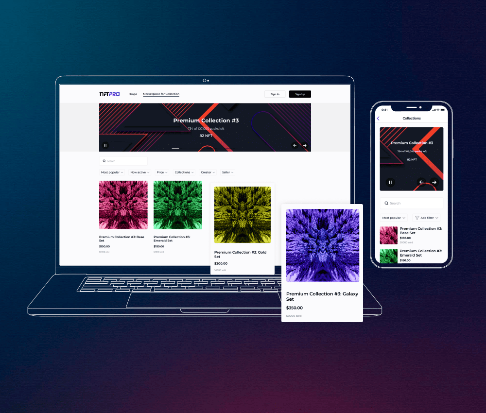 Ettersom vi har gjennomført en dyp analyse av kundens intensjoner og behov, har vi kommet opp med en whitelabel-plattform som gjør det mulig for merkevarer å raskt opprette og distribuere sine egne NFT-markedsplasser for lagring av NFT-varer, legge dem ut for salg og samle dem. Applikasjonens design muliggjør komfortabel bruk av appen for brukere med ethvert erfaringsnivå, noe som gjør tjenesten tilgjengelig for et bredt publikum. Et bredt spekter av betalingsmetoder støtter også denne tilgjengeligheten.