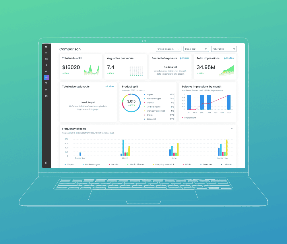 Teamet vårt har utviklet verktøy for å sammenligne salgs- og resultatdata på tvers av ulike automater eller tidsperioder. Dette bidrar til bedre beslutningstaking ved å synliggjøre trender og avvikende verdier.